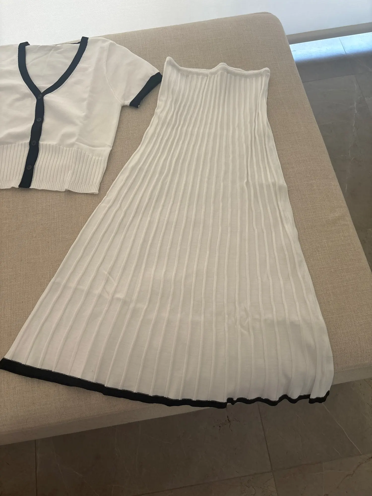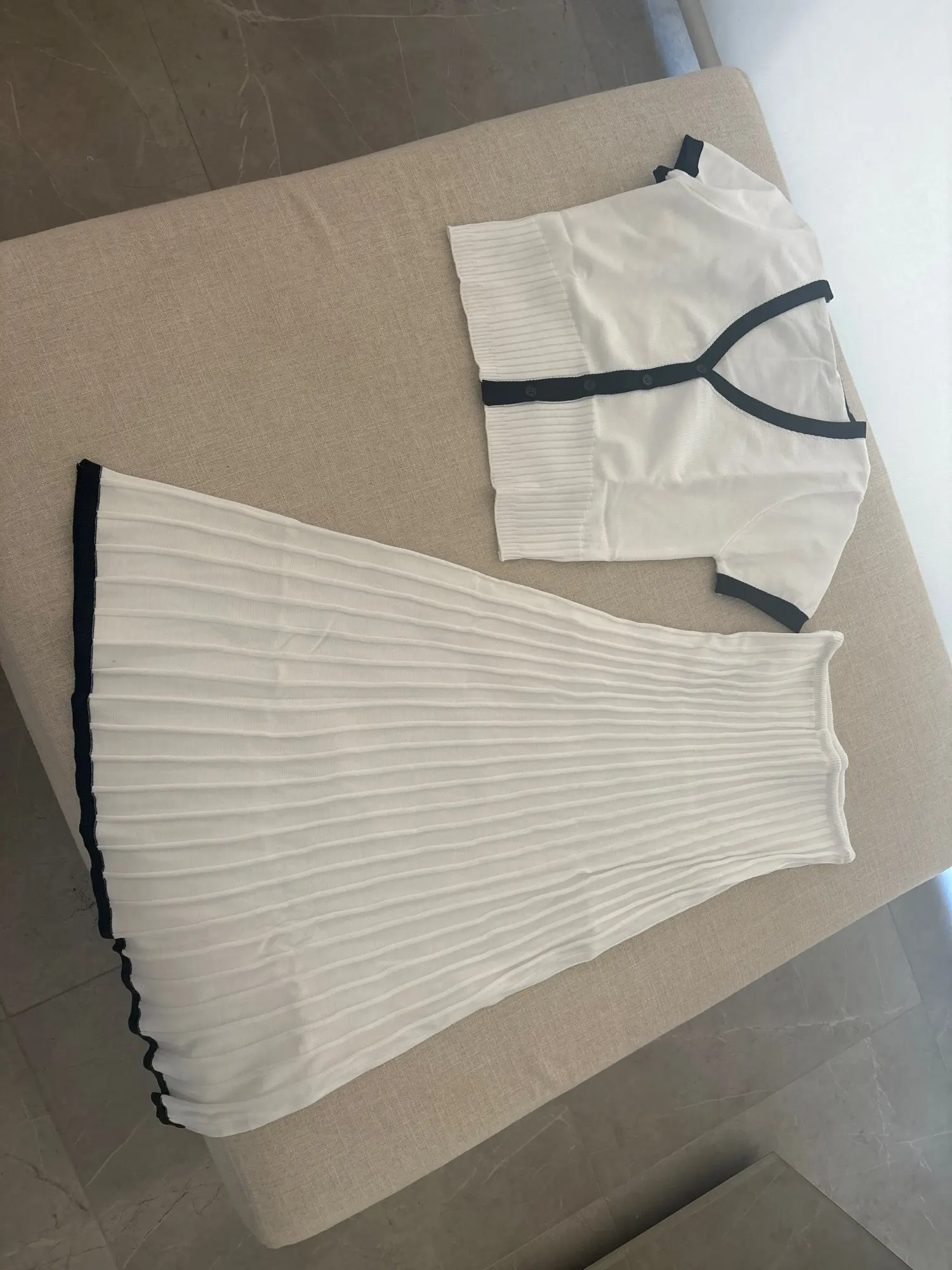 Sunlit elegance meets breezy charm in the Isla set — a white ruched crop top and flowing midi skirt duo. Its V-neck lapel and soft A-line silhouette blend tailored polish with relaxed ease, perfect for warm summer brunches or chic outings.