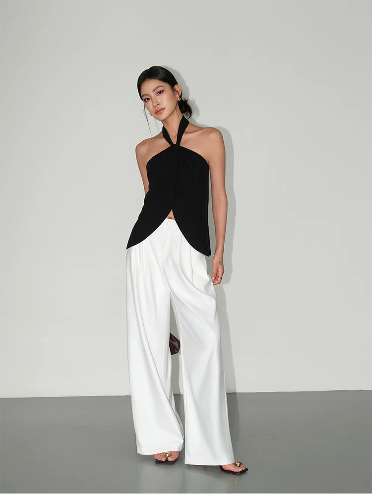 Quiet luxury meets fluid elegance in the Lune trousers — high-waisted, wide-leg pants with a soft, mop-length drape. Their minimalist silhouette blends tailored polish with effortless movement, perfect for autumn offices or chic evening outings.